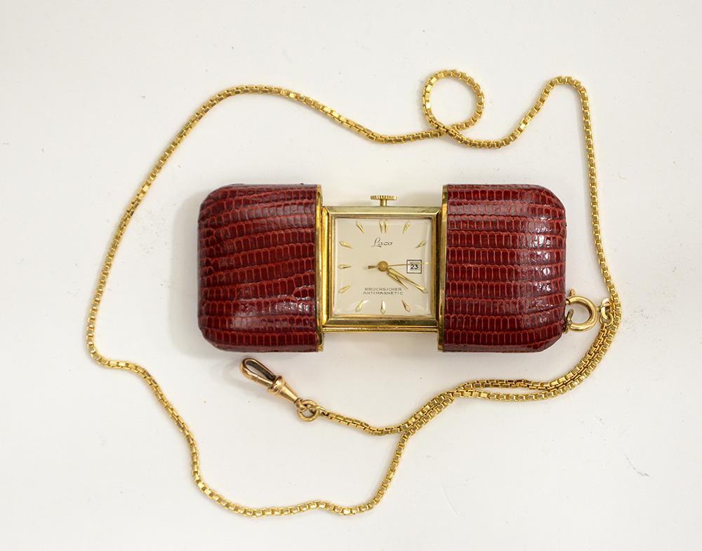 LACO Orologio da borsetta in metallo e pelle, quadrante con indici riportati...