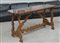 Tavolo con gambe a lira riunite da traverse sagomate, piano ad angoli smussati non pertinente (cm 160x81x55) (difetti)