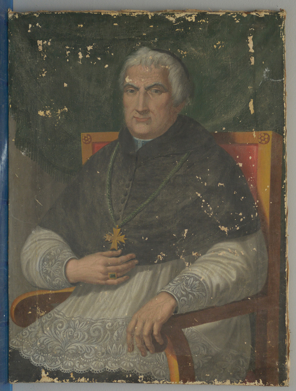 Ignoto del secolo XIX "Ritratto di prelato" olio su tela (cm 79x59) (gravi difetti)