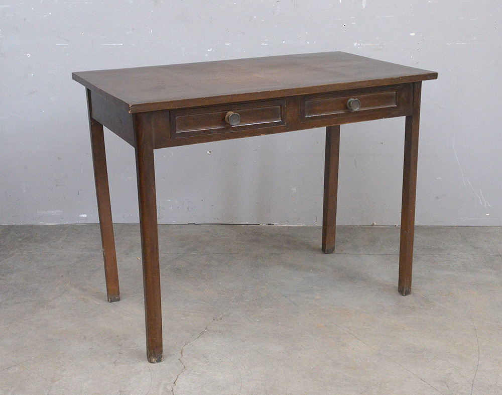 Tavolo scrittoio a due cassetti con gambe squadrate (cm 104x80x60) (difetti)