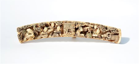 Parte di zanna scolpita ed incisa con figure e calligrafia (l.82...
