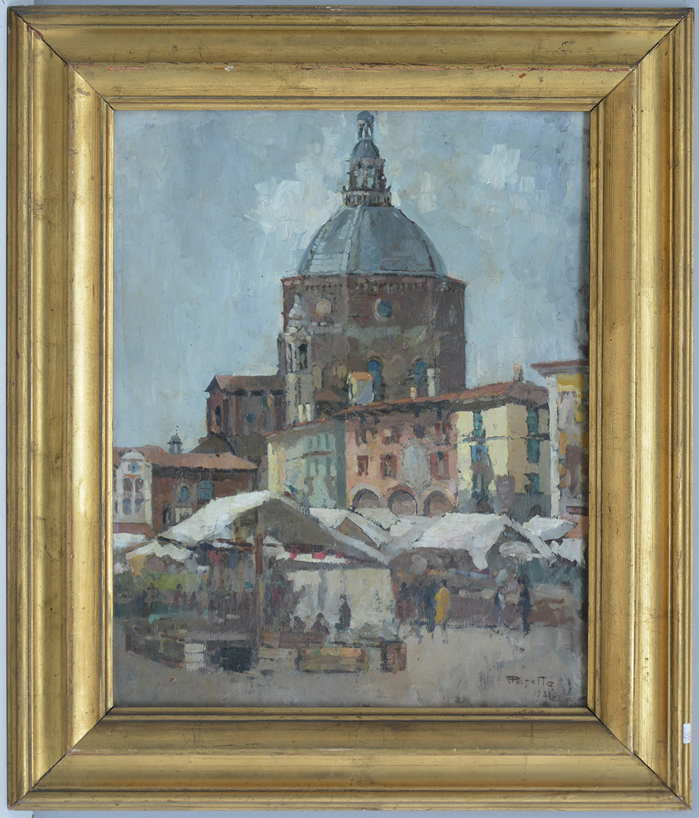 Pasetto "Mercato" 1931, olio su compensato (cm 50x40) Firmato e datato in...