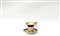 Manifattura del secolo XIX, tazza con piattino in porcellana a fondo blu con profili e fregi dorati decorata in policromia con figura di gentildonna