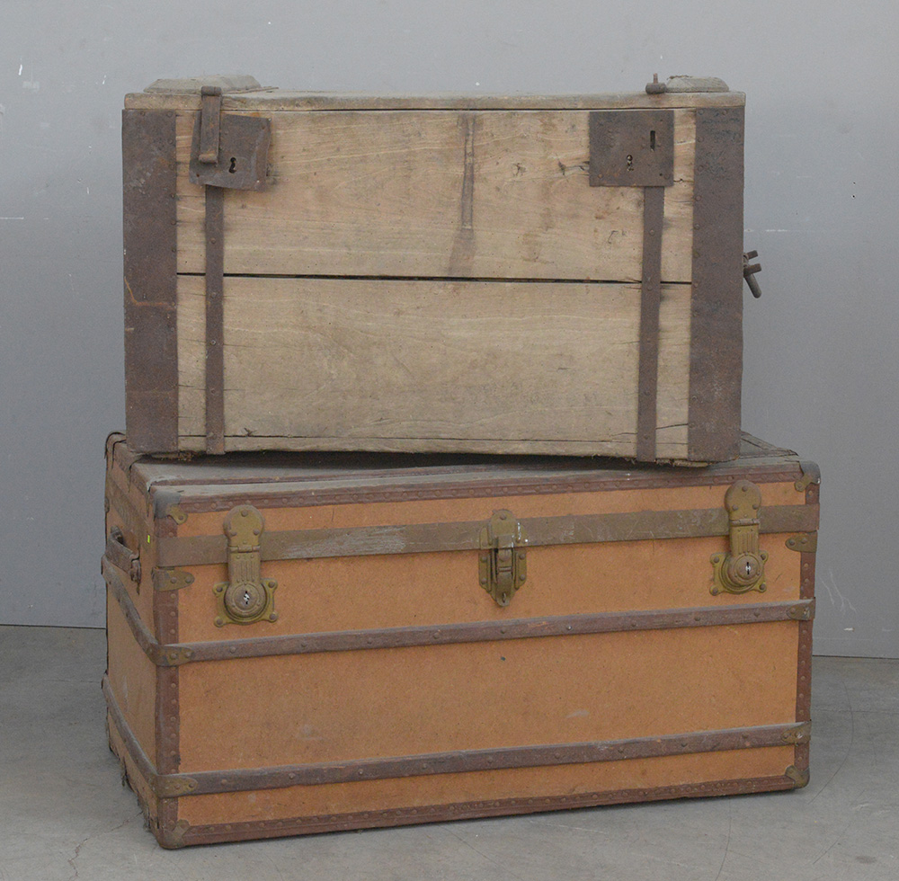 Lotto 3128 | Lotto composto da due bauli da viaggio in legno (difetti)