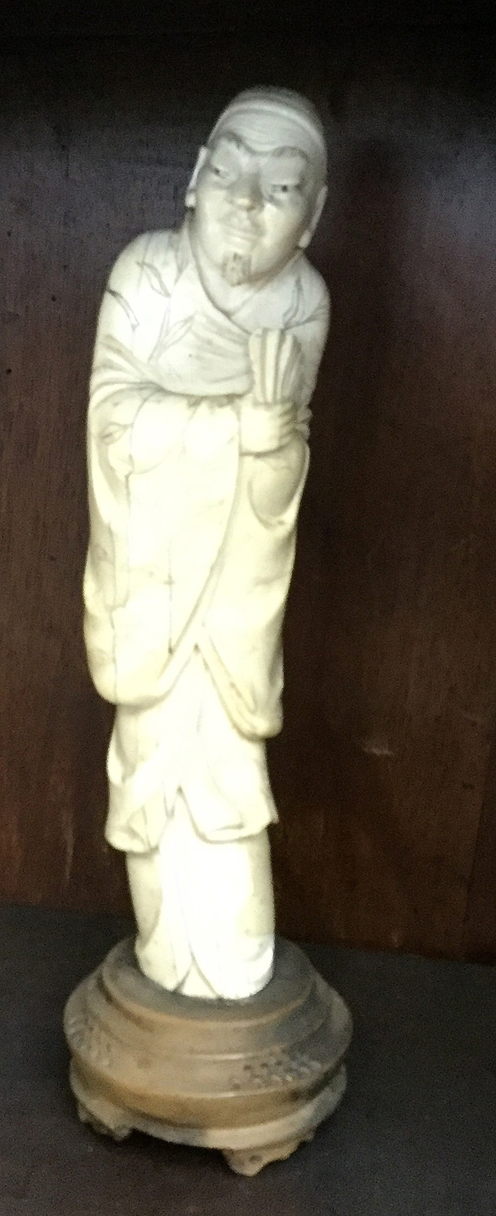 Cortigiano con ventaglio base in legno (h. 26 cm.) (difetti)