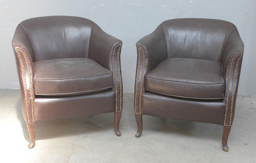 Coppia di poltrone a pozzetto rivestite in similpelle (difetti)