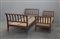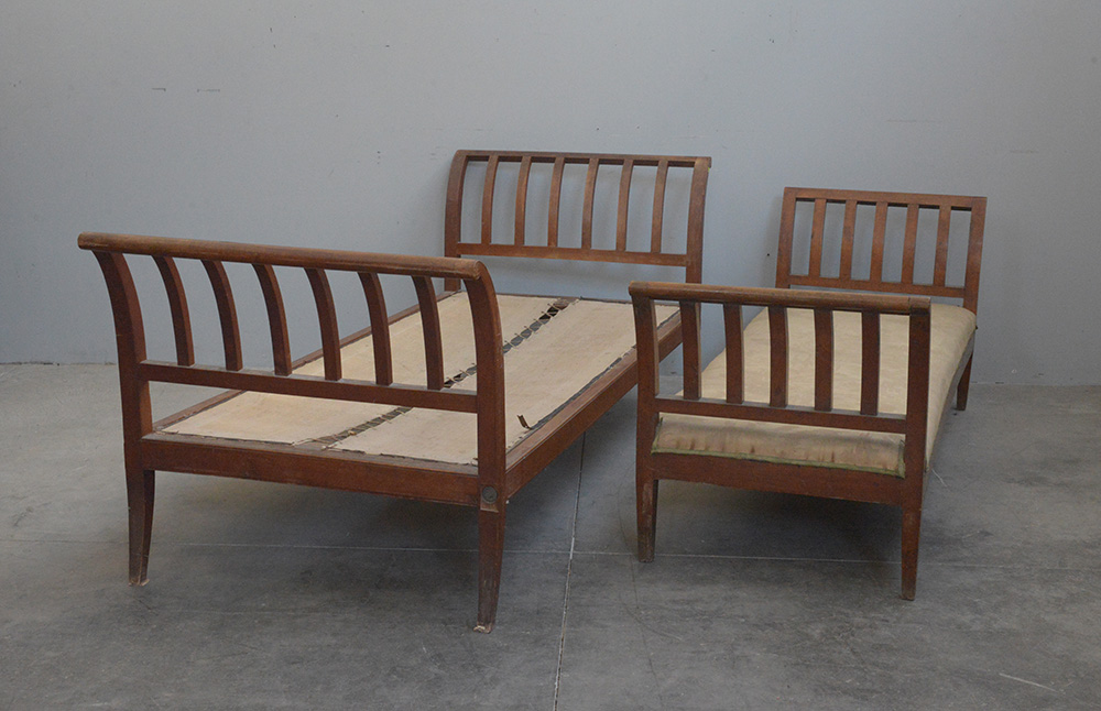 Lotto composto da due letti ad una piazza con pediera e testate decorate a listelli