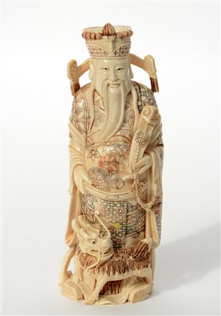 Scultura di mandarino con qilin (h. 23 cm.) (difetti)