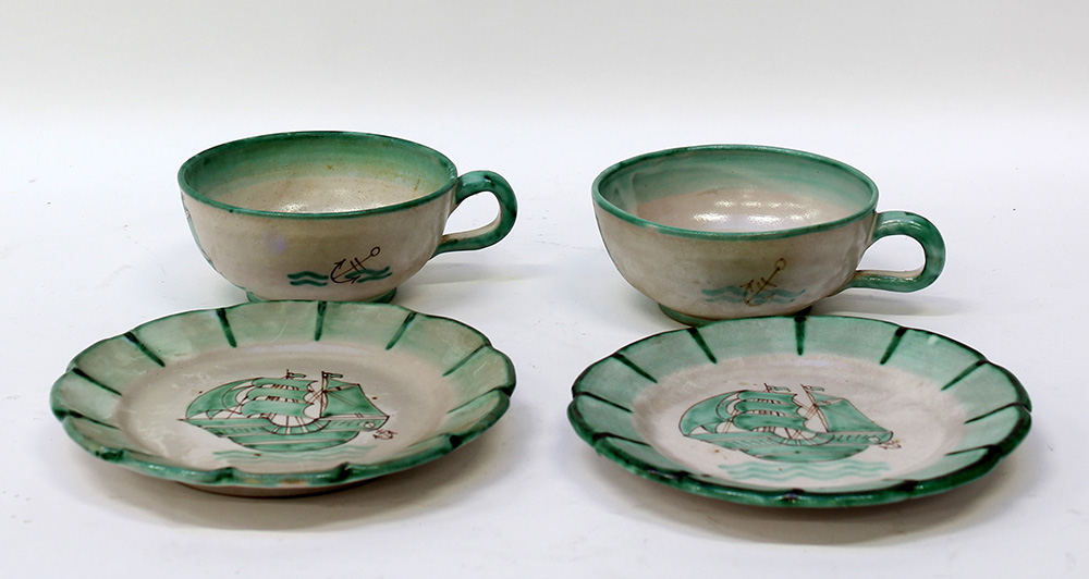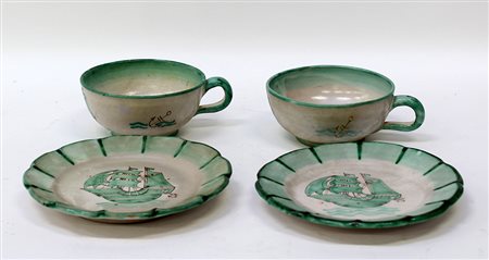 Ceramiche Artistiche Savona Lotto composto da due tazze e due piatti in...