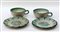 Lotto composto da due tazze e due piatti in ceramica smaltata in verde e bruno. Anni '30. Marcato "Vietri".