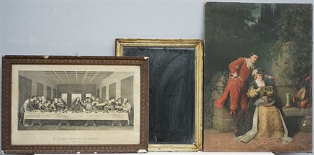 Lotto composto da un'incisione, una litografia a colori ed uno specchio (difetti)