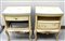 Coppia di comodini con sportelli e vani a giorno, laccati e decorati da fiori...