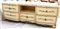 Grande comò a cinque cassetti e vano a giorno laccato e decorato da fiori e volute. Inizio secolo XX (cm 220x82x58) (difetti)