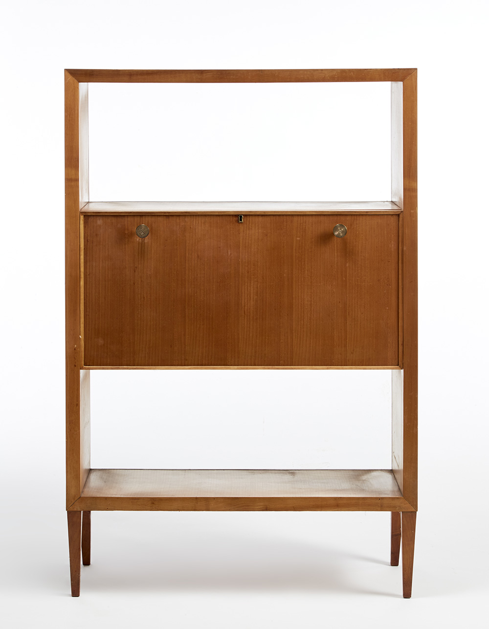 Bar forniture with two compartments and frontal fall. Veneered and edged in light wood. Italy, 1940ca. (100x150x40 cm.) (defects)