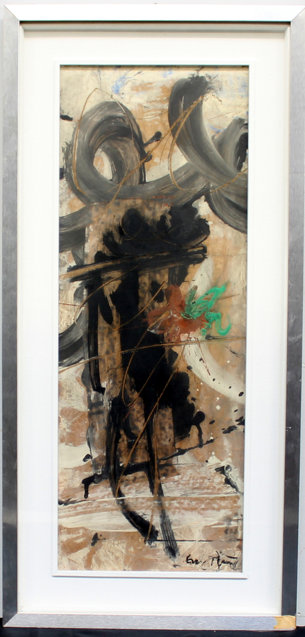 “Senza titolo”, tecnica mista su masonite (cm 69x27) firmato in basso a destra, etichetta al retro, in cornice