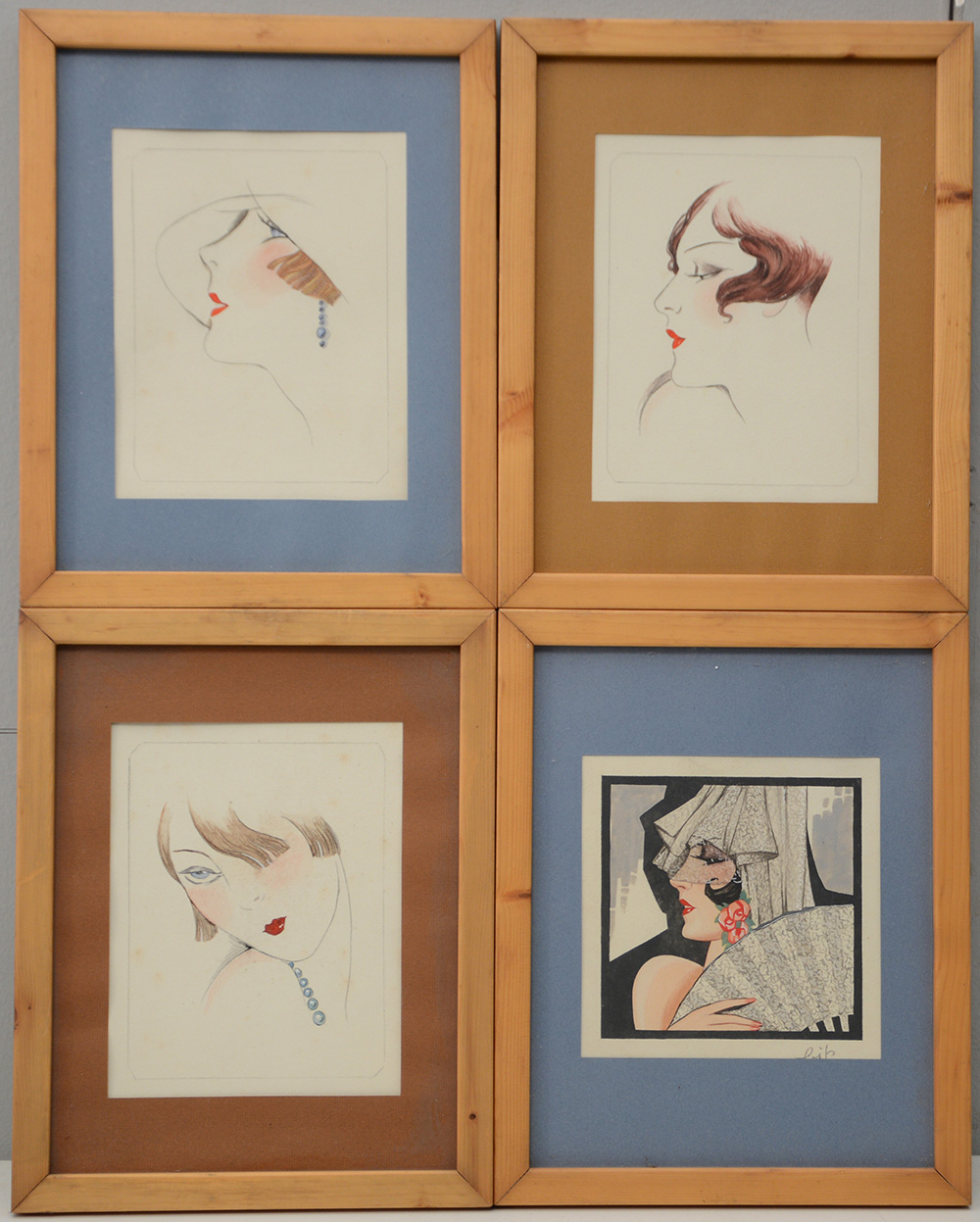 Ignoto inizio sec. XX "Volti femminili" gruppo di quattro acquerelli di misure diverse. In cornici (lievi difetti)