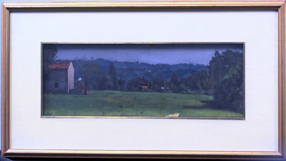 “Paesaggio” 1962, olio su tela (cm 15,5x40) firmato in basso a sinistra, in cornice.
