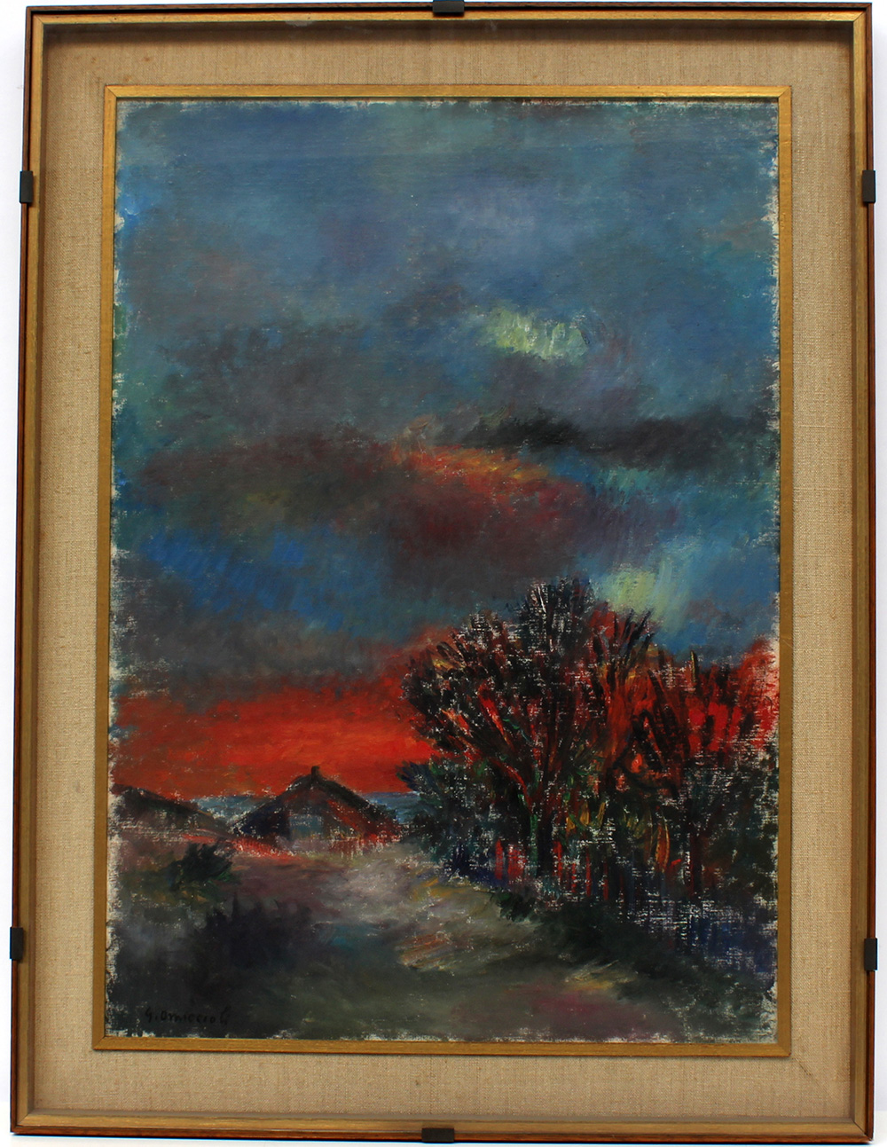 Etichetta della Galleria d'Arte Portofino e timbro della Galleria Gissi di Torino. In cornice