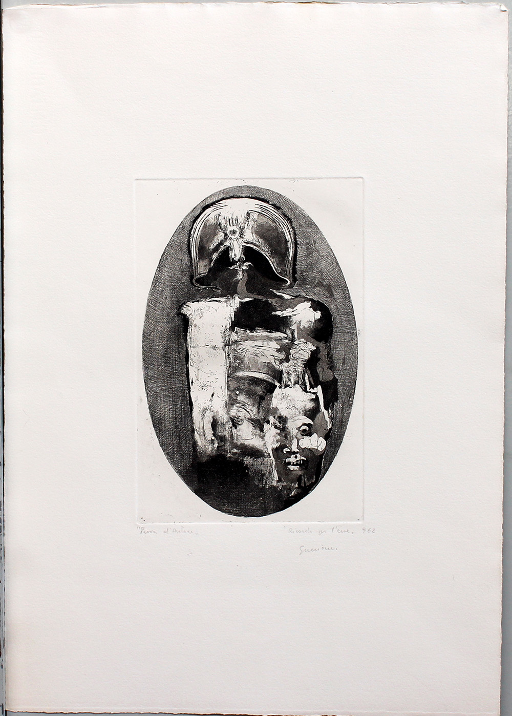 "Ricordo per l'eroe" 1962, acquaforte - prova d'autore (lastra cm 24,3x16; foglio cm 50,5x35)iscritta, titolata, datata e firmata in basso a matita
