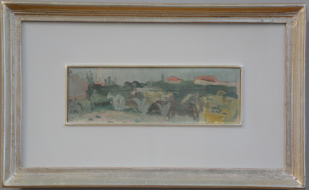 Etichetta della Galleria Ponte Rosso Milano al retro. In cornice.