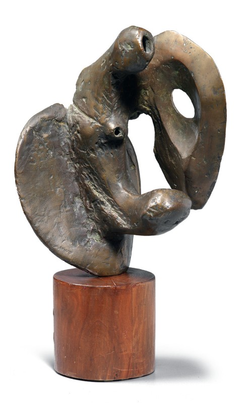 Novello Finotti Verona 1939 Cari Avi, 1963-64 Scultura in bronzo su base in legno, cm. 51 h. (con base) Firma e data al verso: Finotti / 196[...]: etichetta Concorso nazionale per l'acquisto di opere mobili di pittura e scultura da collocarso negli ambienti / del nuovo Ospedale Civile S. Chiara di Trento. Foto autenticata dall'artista.