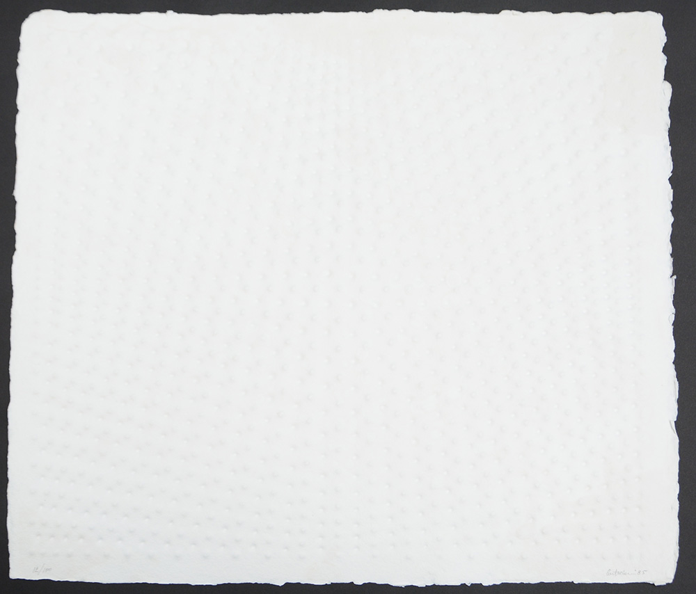 "Senza titolo" 1985, cartoncino estroflesso (cm 55x63,5). Numerato es. 12/100 in basso a sinistra. Firmato e datato in basso a destra (difetti)
