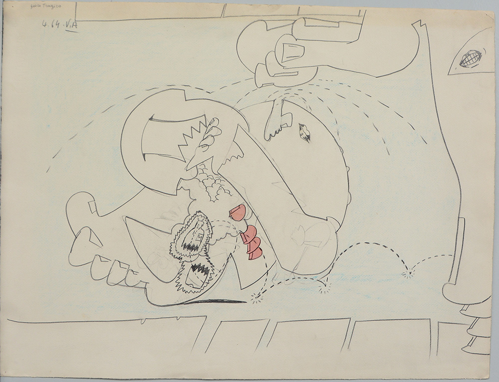 Valerio Adami (Bologna 1935)"Gioco tragico" 1964 tecnica mista su...