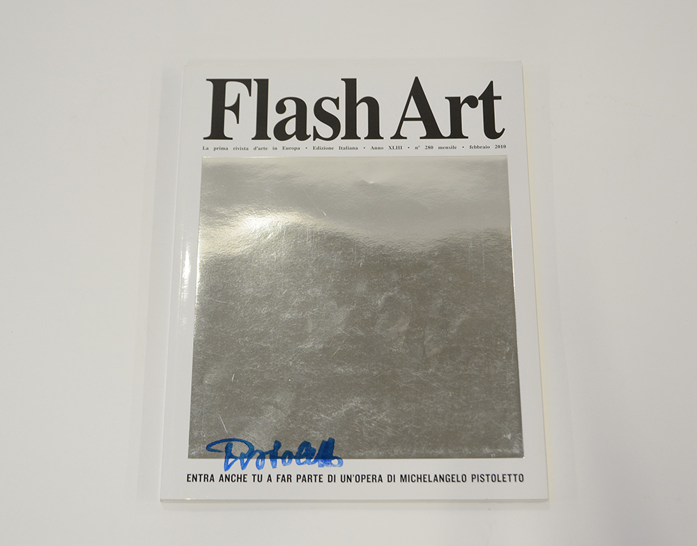 multiplo realizzato in occasione di ArteFiera Bologna, febbraio 2010 sulla copertina di Flash Art, firmato in basso a sinistra.