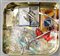 Scatola contenente numerosi toys in argento e metallo e altri oggetti diversi