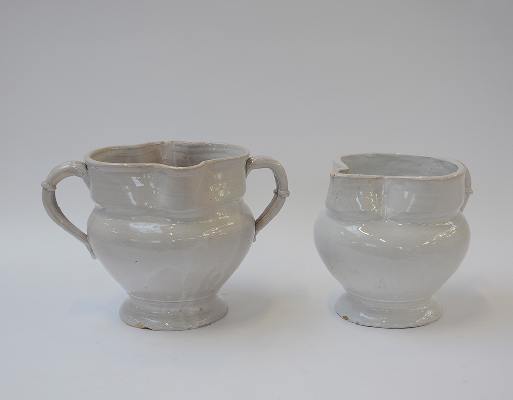 Manifatture del secolo XIX, coppia di versatoi in terraglia smaltata bianca (h cm 24) (difetti)