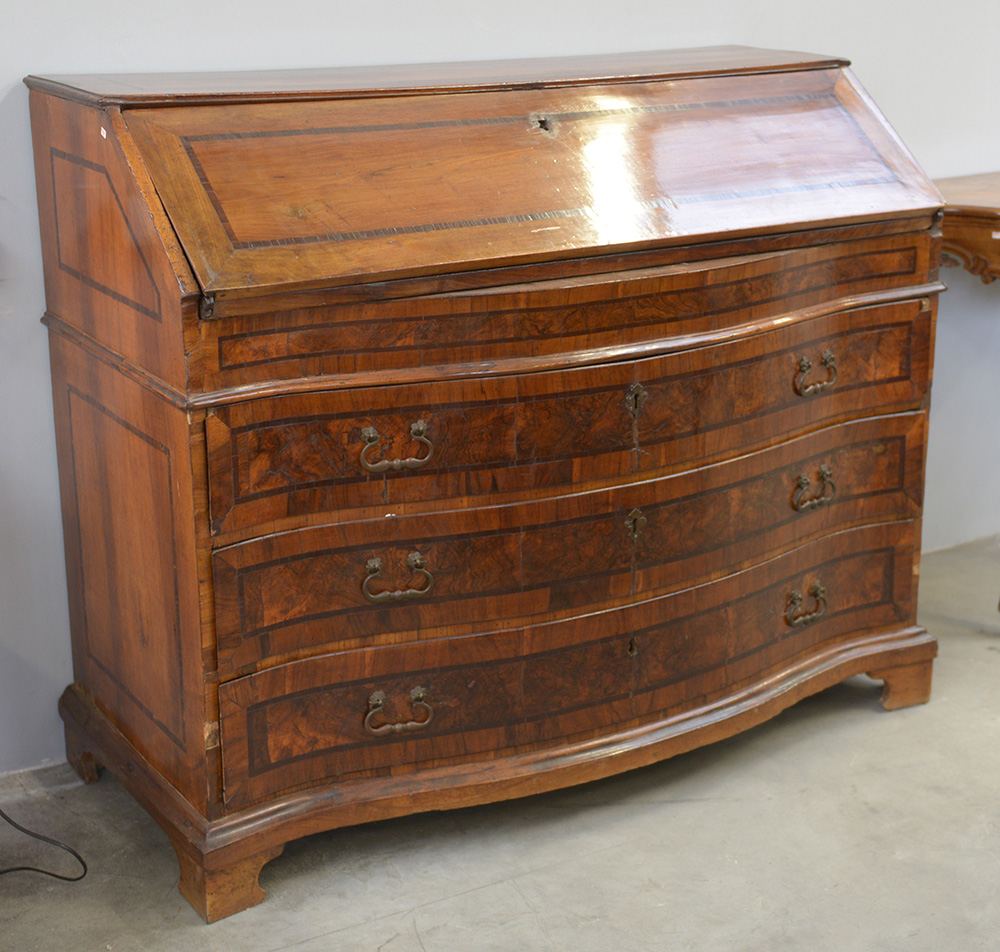 Lotto 4041 | Comodino a tre cassetti filettati e radicati, specchiature incorniciate e...