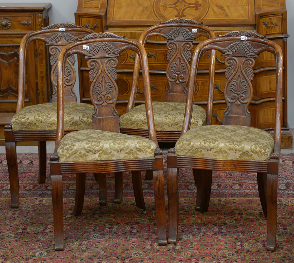 Lotto 4043 | Lotto composto da quattro sedie a gondola di misure diverse del secolo XIX...