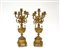 Coppia di candelabri in bronzo dorato a cinque luci con decori fogliacei (h...