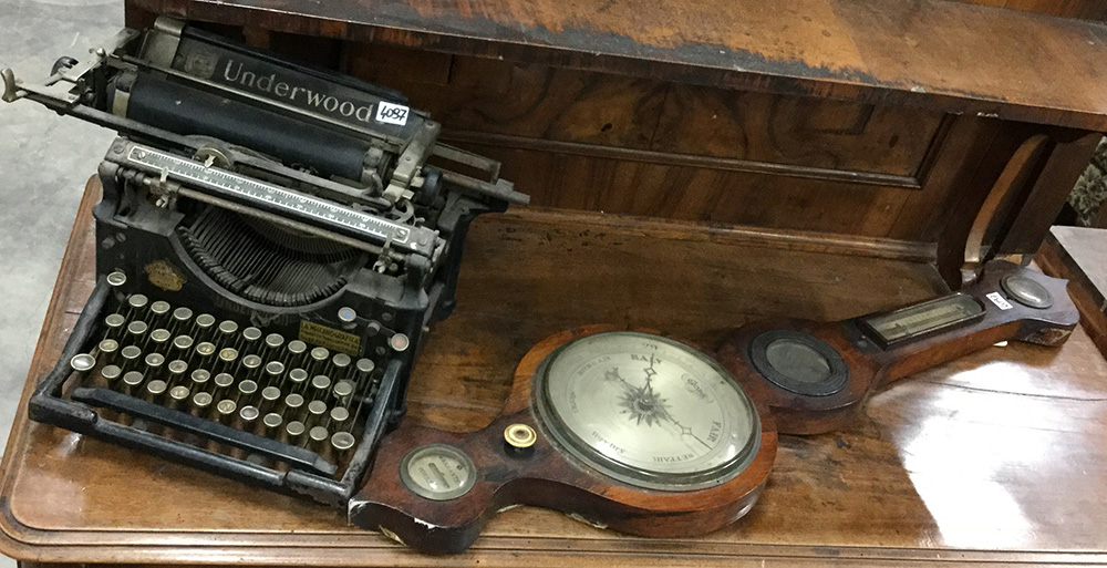 Lotto composto da una macchina per scrivere marcata Underwood e un barometro inglese da parete (difetti)