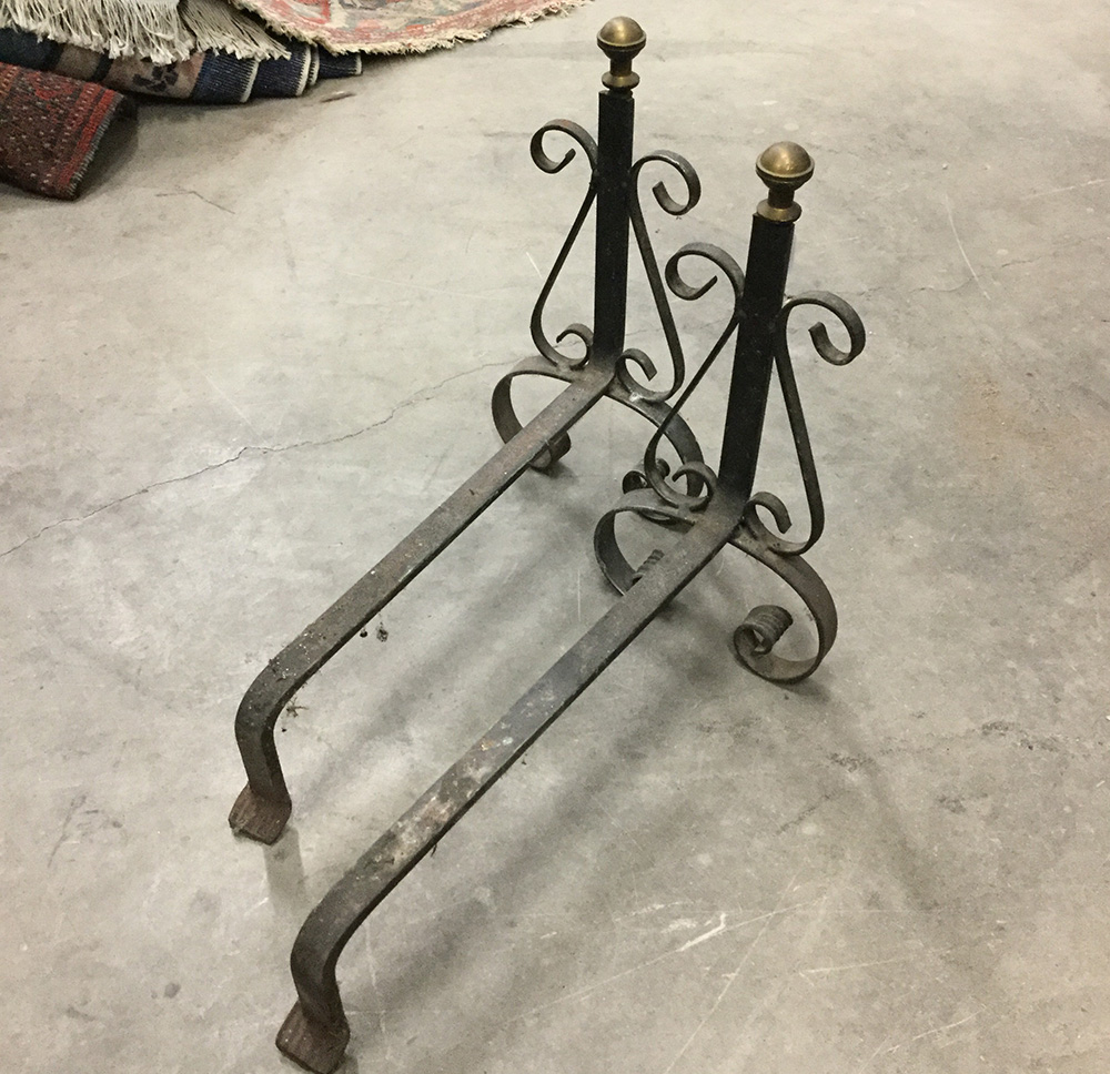 Lotto 4114 | Coppia di alari in ferro battuto decorati da pinnacoli in bronzo tornito