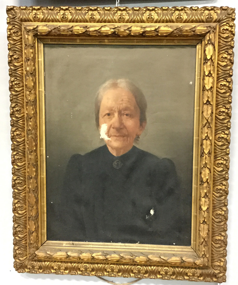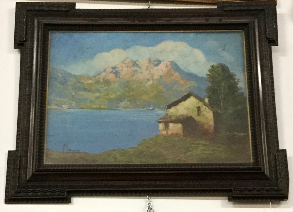 Lotto composto da due dipinti ad olio su tela raffiguranti "Ritratto d’Anziana" e "Paesaggio Lacustre" in cornici (difetti)