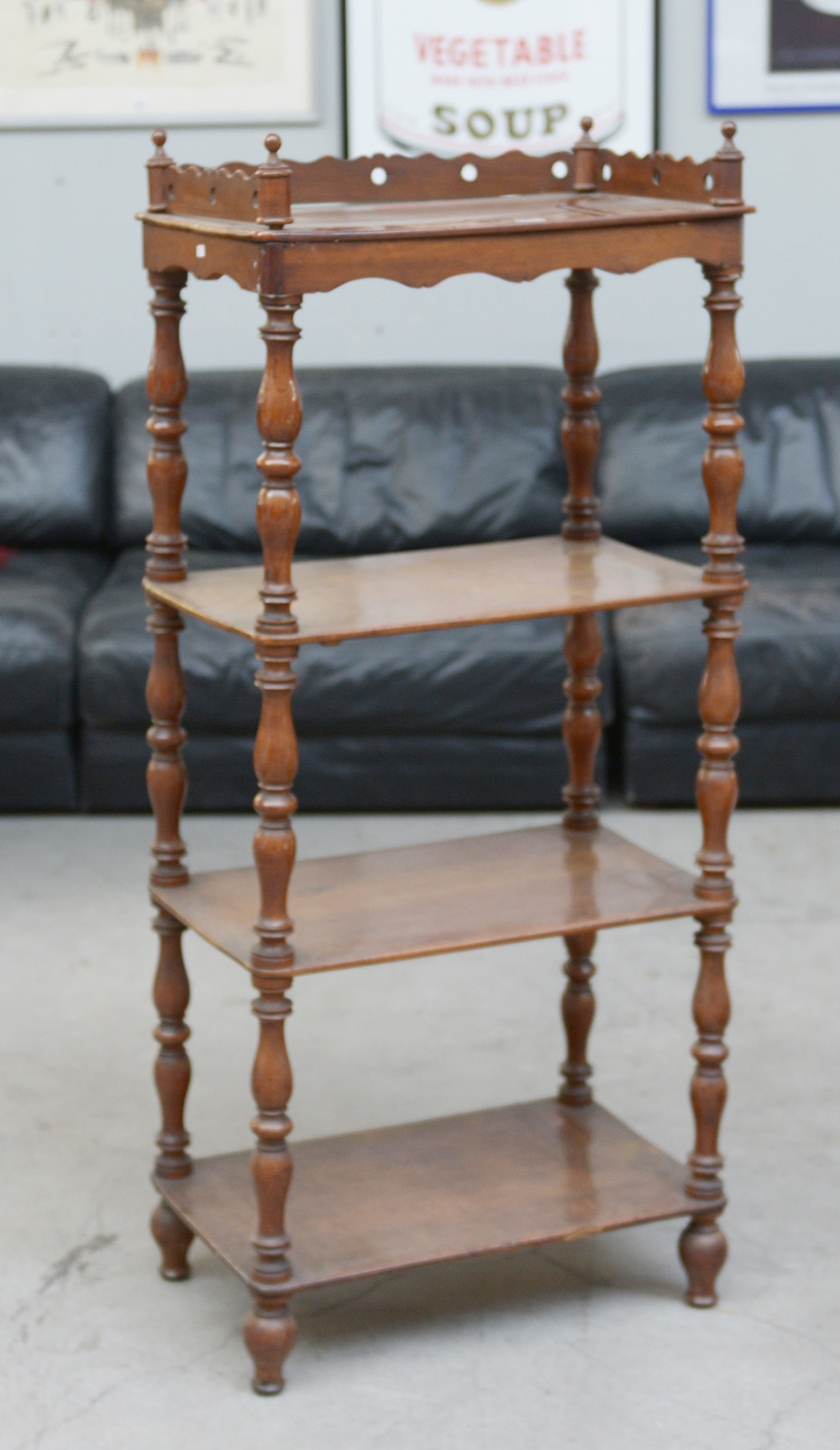 Etagère a quattro ripiani con montanti torniti, secolo XIX (cm 54x127x35)(difetti)