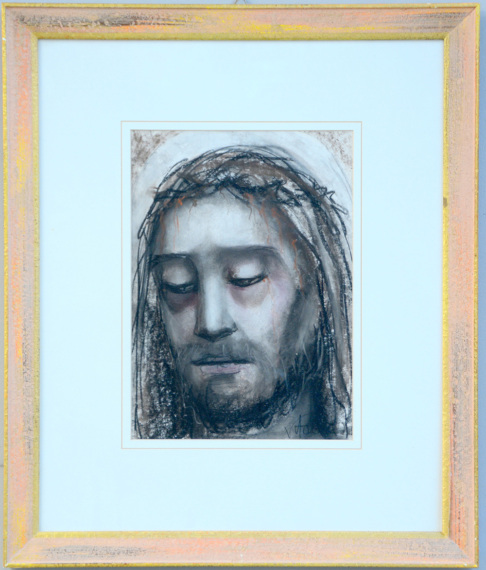Firma indecifrata. "Volto di Cristo" tecnica mista (cm 35x26), firmato in basso a destra, in cornice
