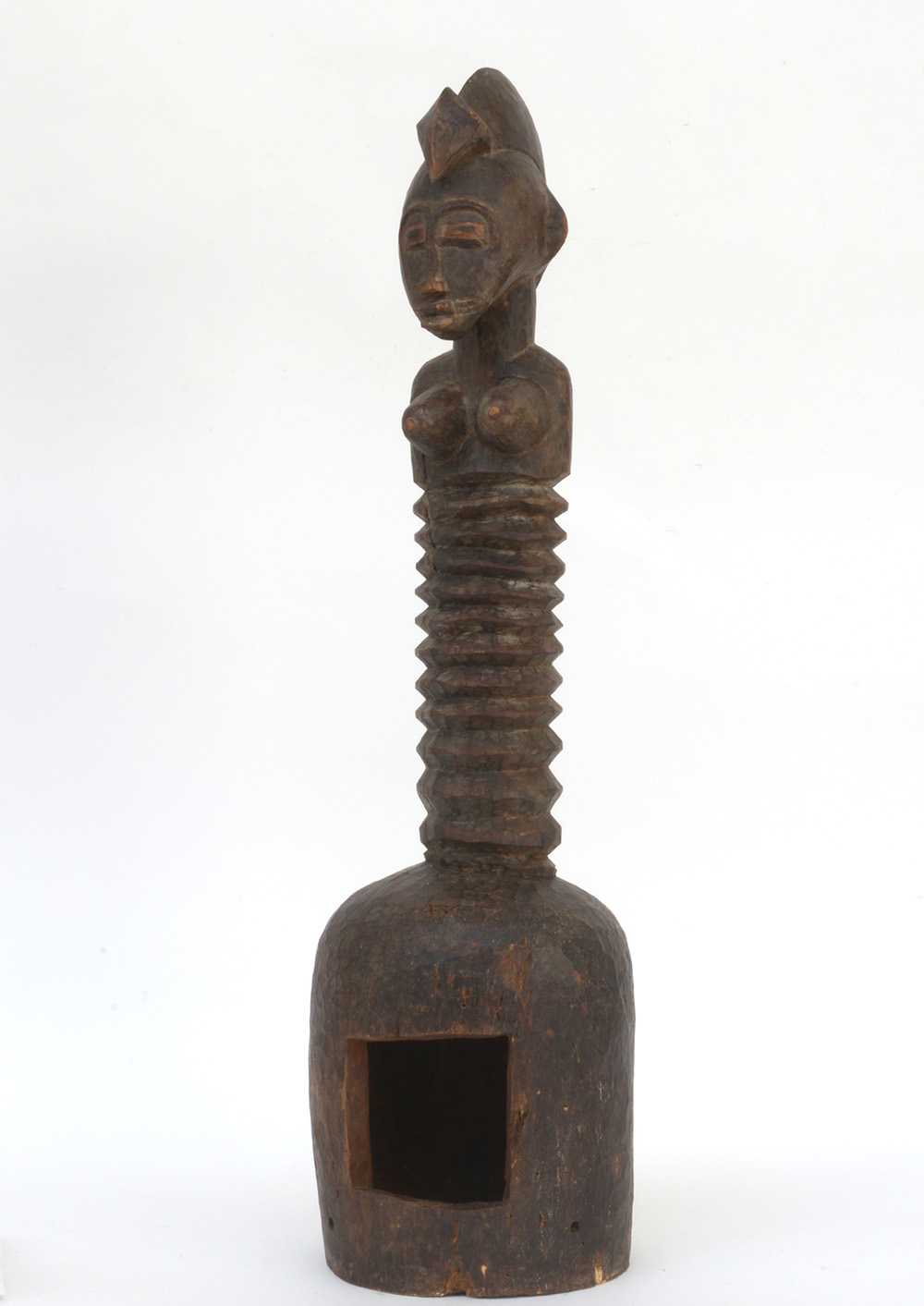 Arte africana, scultura in legno sormontata da figura femminile (h cm 91) (difetti)