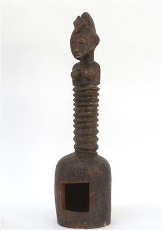 Arte africana, scultura in legno sormontata da figura femminile (h cm 91)...