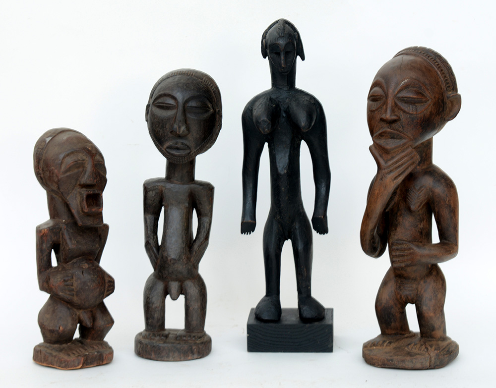Arte Africana, lotto di quattro sculture in legno a figure maschili e...