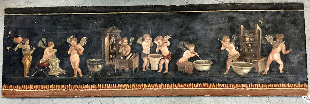 Firma indecifrata. "Pompei 1897" olio su tela (cm 31x103) firmato e titolato in basso a sinistra