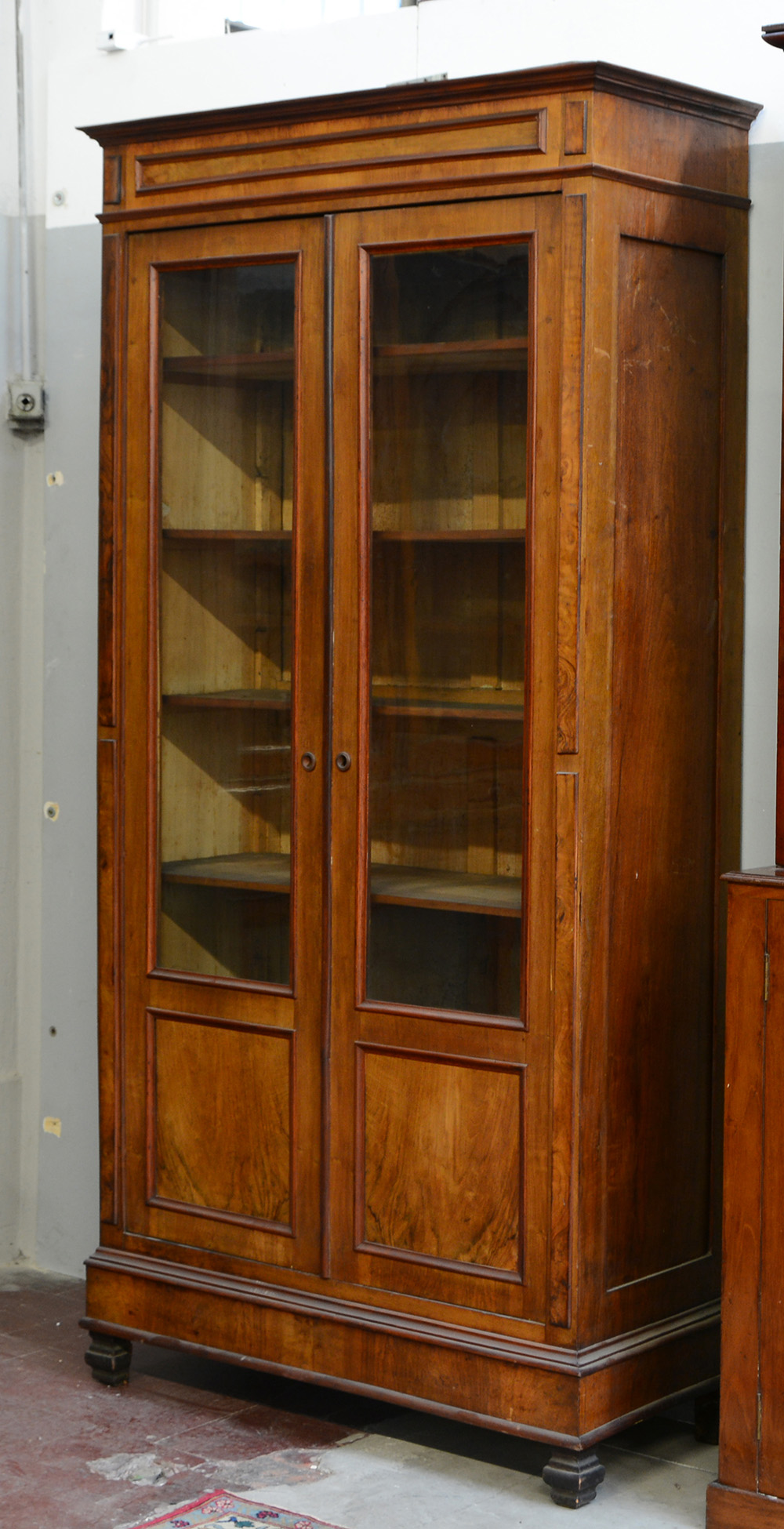 Vetrina a due ante in noce con specchiatura in radica, Lombardia secolo XIX (cm 102x211x46)(difetti)