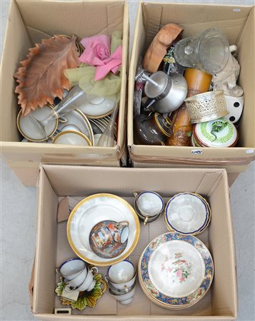 Tre cartoni contenenti numerosi oggetti di diverso uso (difetti e mancanze)