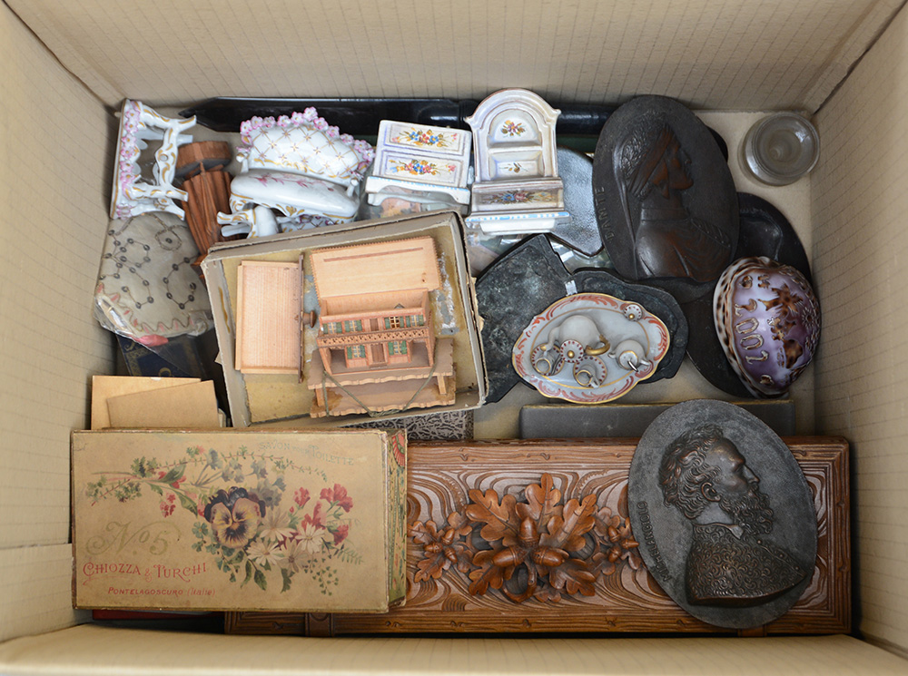 Cartone contenente numerosi oggetti di diverso uso e fattura (difetti)