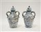 Coppia di vasi biansati con coperchio, in maiolica decorata in monocromia con...