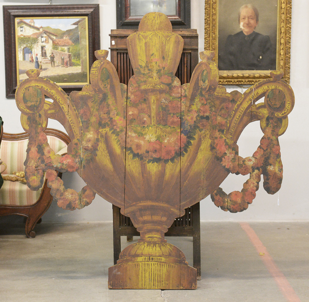 Lotto 4330 | Elemento decorativo a pannelli sagomati dipinto in policromia, secolo XIX (cm...