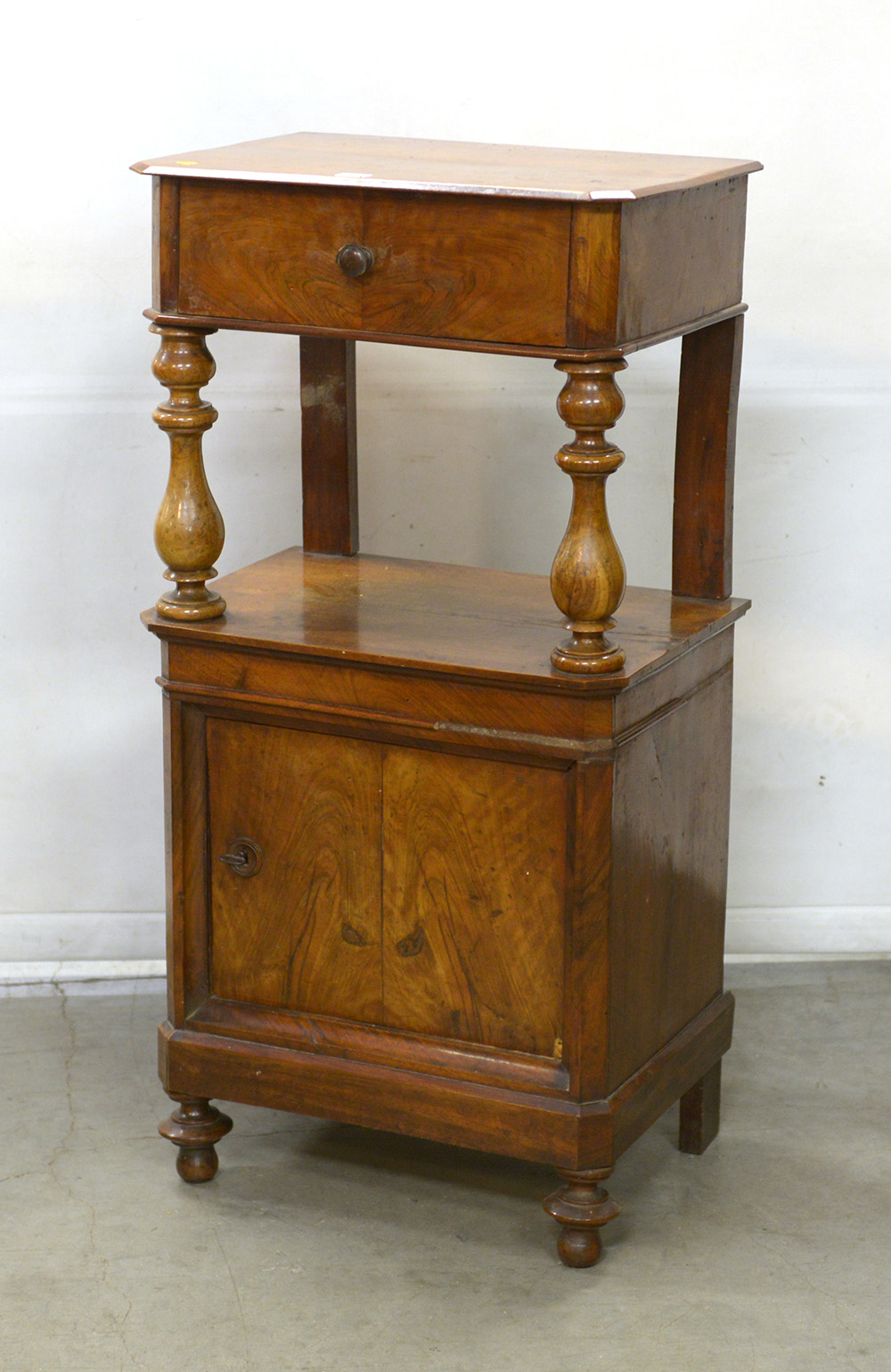 Comodino ad un'anta e un cassetto con montanti torniti, secolo XIX (difetti)
