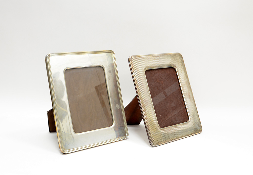 Due cornici da tavolo diverse in argento (lievi difetti)
