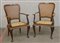 Coppia di poltroncine in legno dolce di forma mossa con sedute e spalliere incannucciate (difetti)